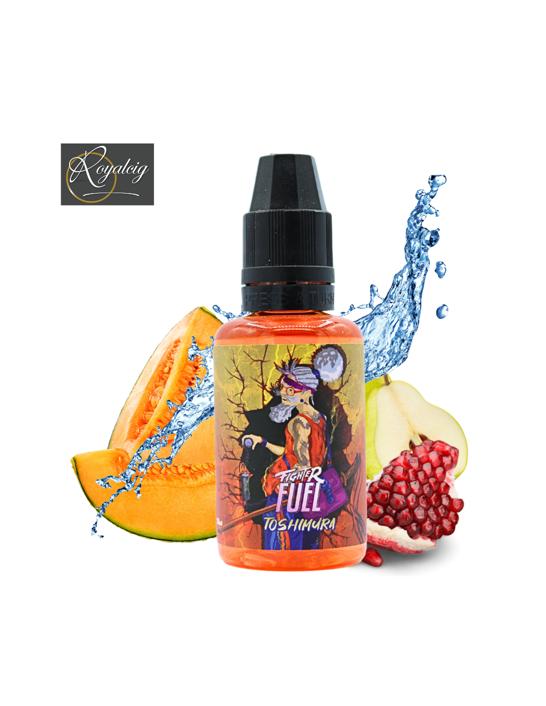 Découvrez le Concentré Toshimura 30ml - Fighter Fuel ! Un trio explosif de poires, melons et grenades, sublimé par une fraîcheur intense ❄️. Idéal pour le DIY e-liquide, ce concentré fruité et rafraîchissant promet une vape pleine de saveurs. 🚀 Commandez maintenant !