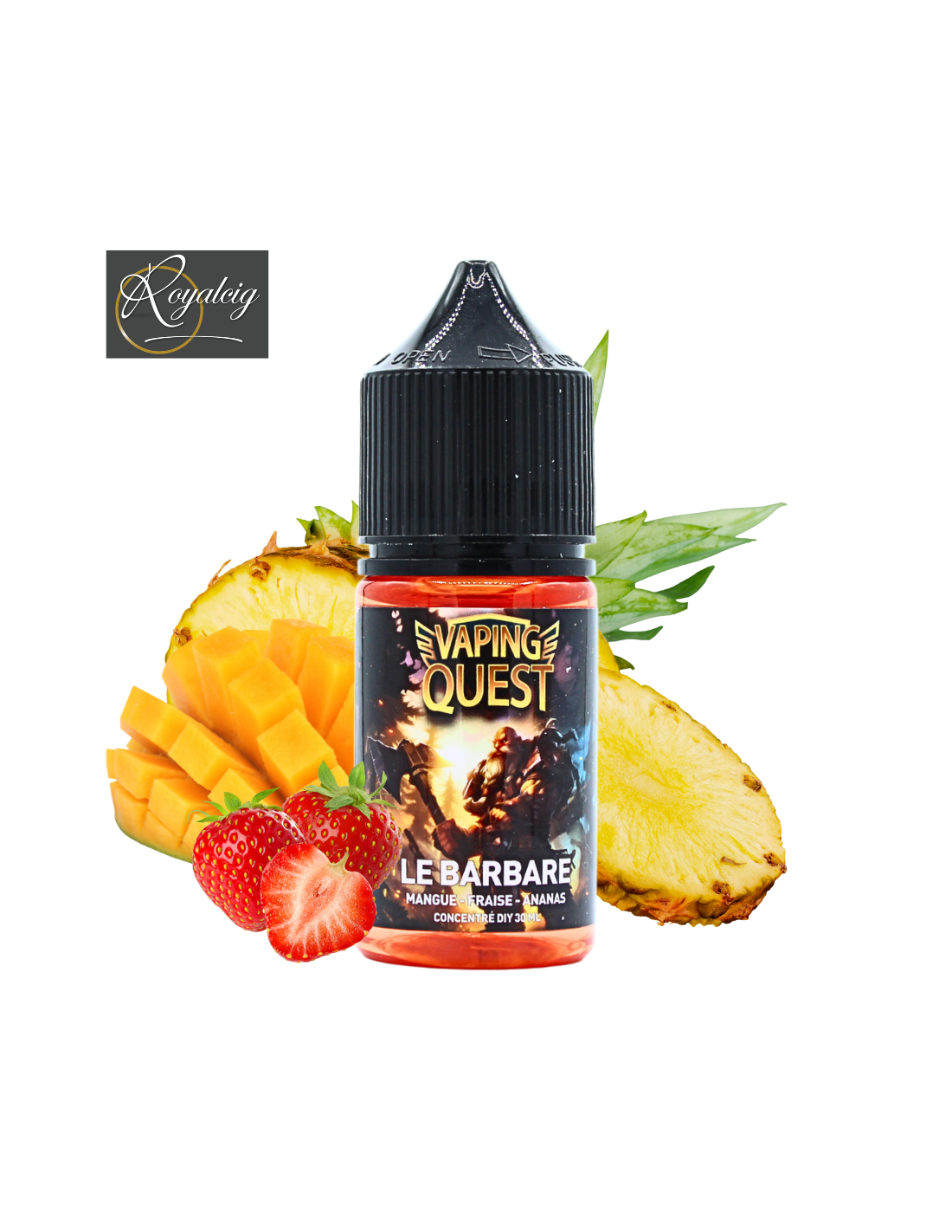 Le Barbare de Vaping Quest, un atrevido concentrado DIY de 30ML que combina la potencia del mango, el exotismo de la piña y la dulzura de la fresa. ¡Una mezcla explosiva para vapear intensamente afrutado!