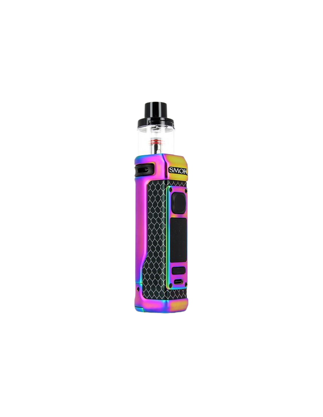 El KIT RPM100 SMOK es una nueva gama de pods compactos y ligeros con tecnología IML. Cuenta con una pantalla TFT en color de 0,96 pulgadas, un puerto USB Type-C para la carga y un sistema de flujo de aire giratorio. El kit viene con un cartucho RPM3 de 6ml y es compatible con las resistencias RPM3 de Smok. Puede llevar una batería 21700 o 18650, gracias al adaptador suministrado. El kit incluye la caja RPM100, el cartucho RPM3, dos resistencias RPM3, un adaptador de batería 18650, un cable USB Type-C y un manual de usuario.